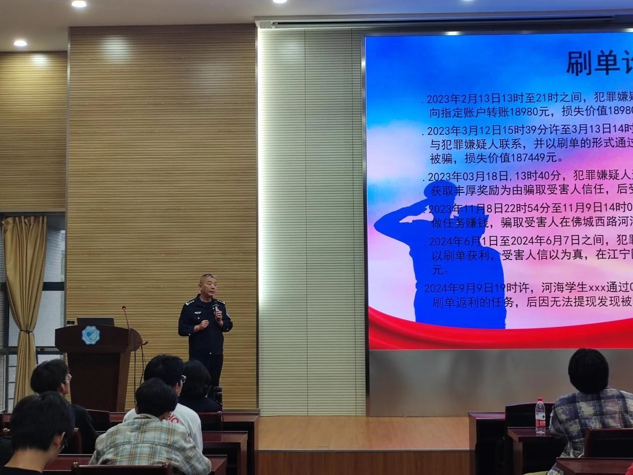 为积极响应国家关于加强防范电信网络诈骗的号召,切实提升老员工的识骗防骗能力,保护员工财产安全,2024年10月31日,betway西汉姆联于江宁校区笃学楼208顺利举办反诈安全知识讲座。此次讲座特邀江宁公安分局开发区派出所一级警长娄军来警官担任主讲人。betway西汉姆联驻校民警钱慧、保卫处张彦德老师以及betway西汉姆联辅导员、2024级全体本科生和本硕博各班班长、心理委员、防诈宣传委员等参与本次讲座。