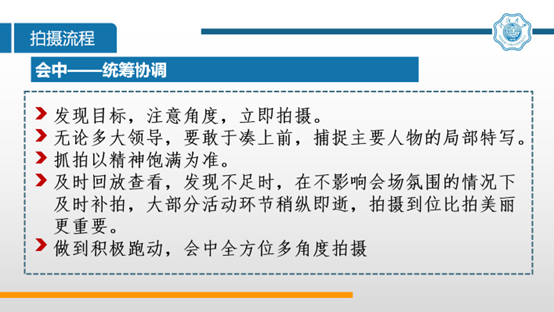 李铃敏结合自身丰富的实战经验,为同学们系统讲解了活动摄影的精髓。她强调,活动摄影要以资料记录和宣传为核心,重点捕捉主要人物及关键瞬间,并用照片讲述故事。在会前,她建议摄影师提前到场了解光线,做好设备调试;会中要积极跑动,多角度捕捉生动画面,并及时检查拍摄效果。关于构图,李铃敏详细讲解了全景、中景及特写的运用,并指出在动态场景中应优先使用高快门速度。她还解析了光圈、快门速度与ISO的调整策略,纠正常见误区,帮助同学们掌握实用摄影技巧。
