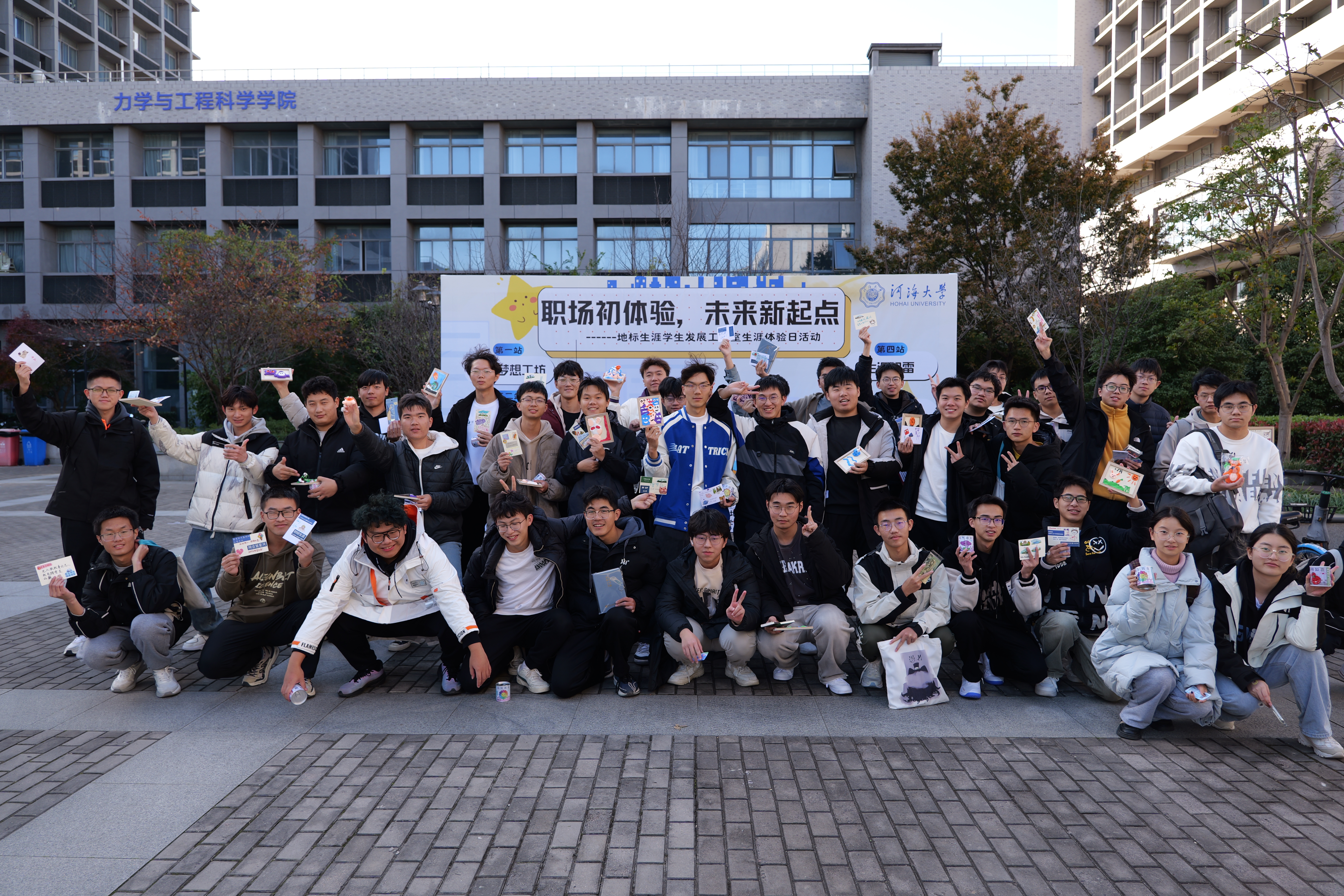 “梦想合影墙”为活动增添了独特的仪式感,同学们手举梦想牌或自己的作品,脸上洋溢着微笑,眼神中透露出自信,用影像记录下这次充满意义的初体验。