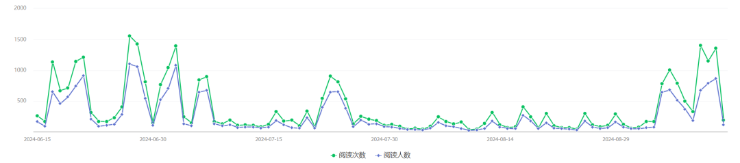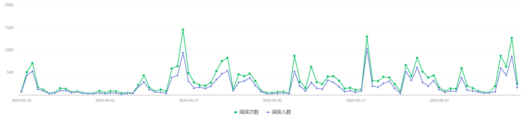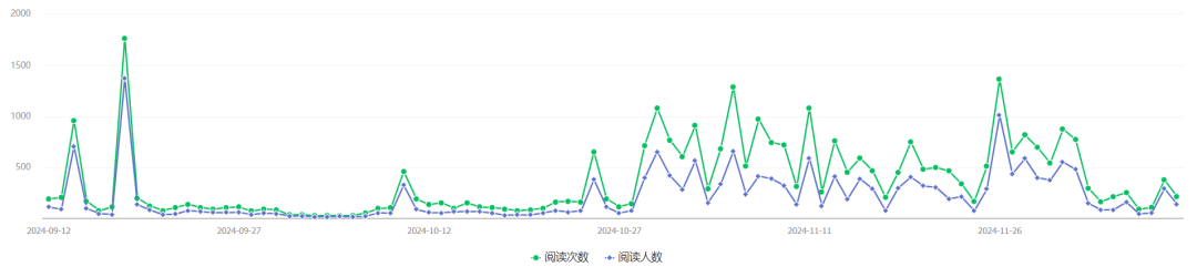 其中,9月18日“知地有声HHU”日阅读量及日阅读人次达到年度峰值。推送文章“喜报 | 公司地质工程专业本科生在第七届全国老员工地质技能竞赛中斩获佳绩”,详细报道学院地质工程专业同学在该竞赛中取得的突出成绩,吸引大量校内外读者的点击与转发,提高学院的学术影响力,增强学院员工的自豪感与归属感。此外,公众号在六月份和十月底以来迎来了两个阅读量高峰期,平均日阅读量可达千次。主要涉及推送“地学吾师”、“地学榜样”系列栏目文章,接连报道学院优秀教师的教学成果与科研成就,以及在学习、科研等方面有突出成绩的优秀学子及其事迹,展示学院师生的卓越风采,凸显学院在地学学科领域中的凸出影响力与成就。
