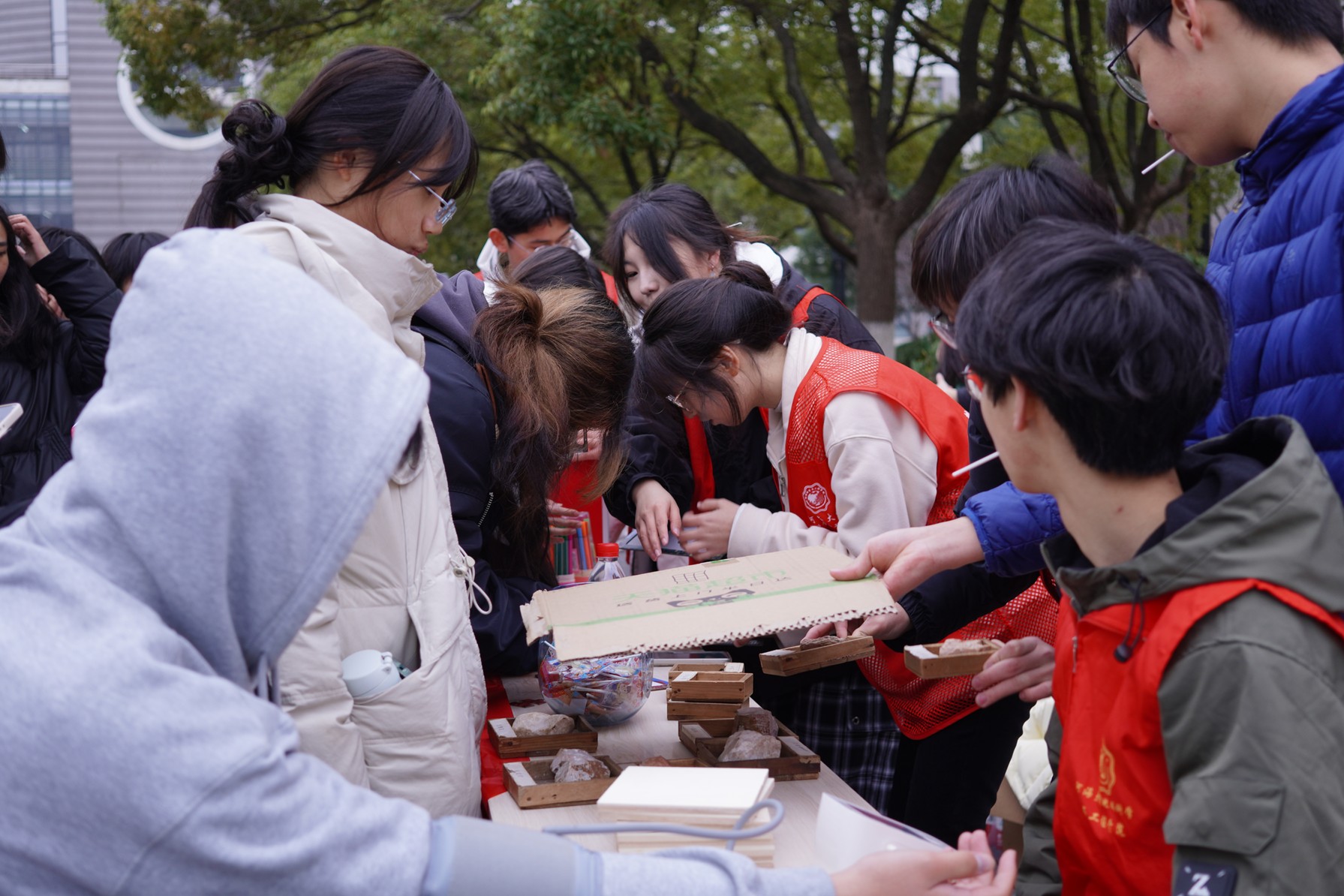 另一侧的岩石记忆游戏也同样吸引了众多目光,参与者需在限定时间内辨认出各种岩石并正确归位。尽管难度较大,但许多同学依然表现出色,成功完成了挑战,并借此机会加深了对地质知识的了解。