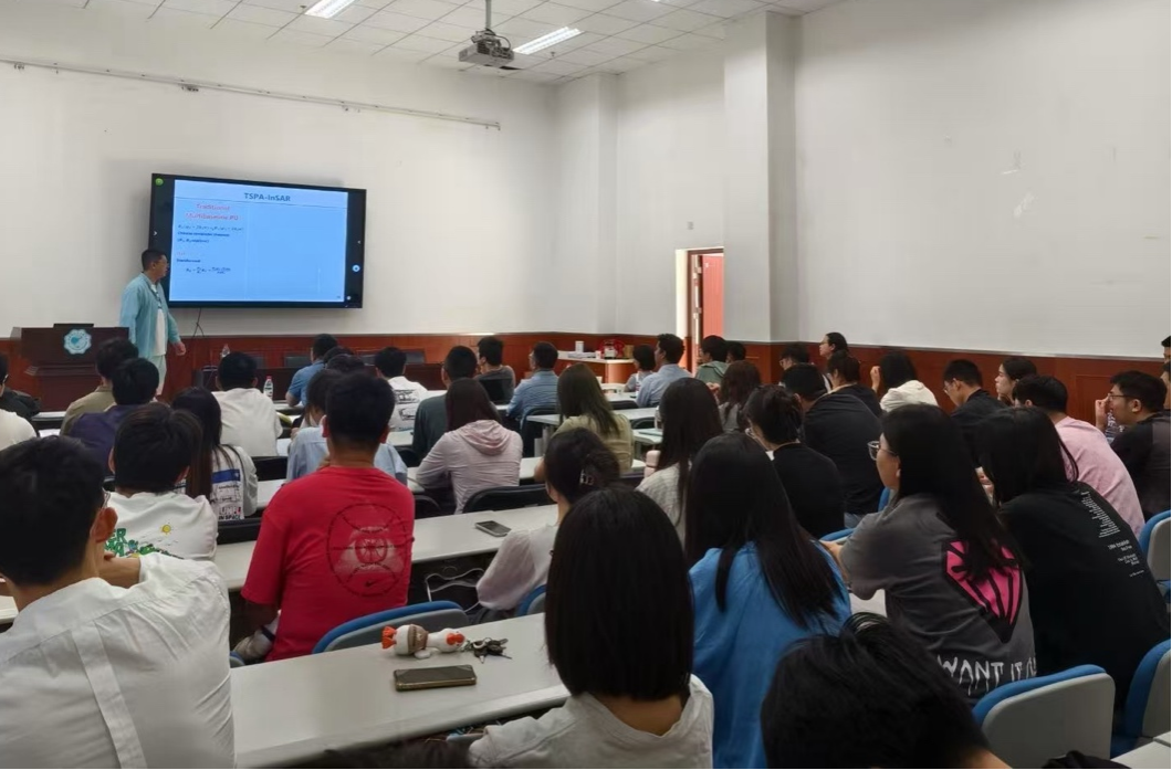 于瀚雯教授主要从事计算机技术与遥感、地球科学交叉领域的研究工作。报告中于教授重点介绍了由他独立提出的TSPA-InSAR技术,并进行了由浅入深的原理推导。这项突破性研究摆脱了传统InSAR技术对相位连续性假设的依赖,通过TSPA+Along-Track-InSAR方法的结合,为冰川流速监测提供了新思路。于教授以诙谐幽默的报告形式,结合科研生涯中的趣味故事,深入浅出地将深奥的技术原理娓娓道来,在场师生们在会心一笑中共同领悟技术精髓。
