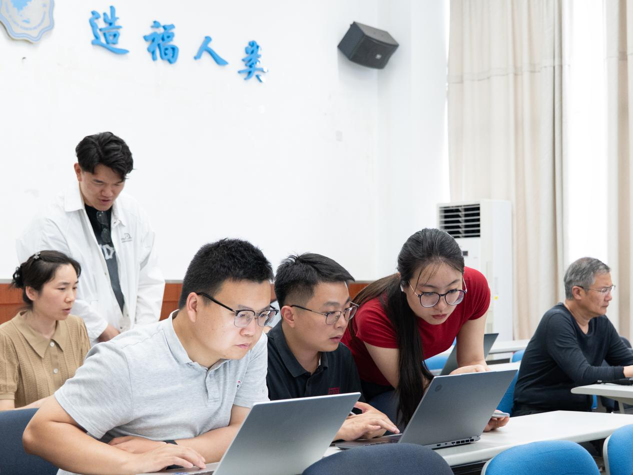 在培训过程中,教师携带个人笔记本电脑及相关课程教学资源(如教学大纲、课件、视频等),在现场实时操作演练和深度互动交流,教师们积极参与,现场学习氛围浓厚。