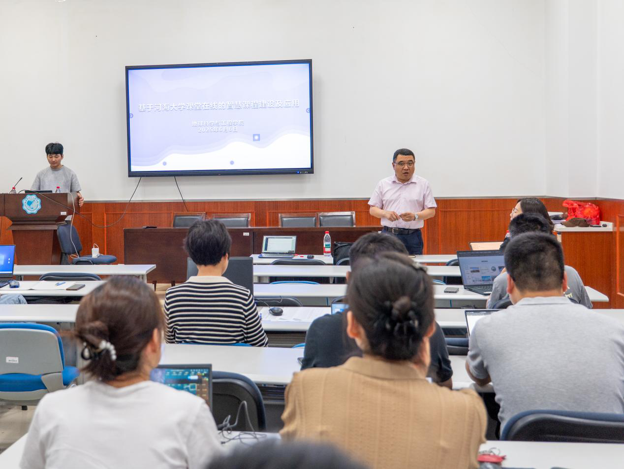 曹羽讲师以《基于betway西汉姆联课堂在线的智慧课程建设及应用》为题做了精彩报告,他深入剖析了智慧课程的核心内涵与发展趋势,重点介绍了如何利用学校“课堂在线”平台,高效构建智能化的课程知识图谱和任务驱动引擎,打造互动性强、适应性高的智慧课程。报告紧密结合教学实际,分享了知识图谱在辅助教学中的应用实践。