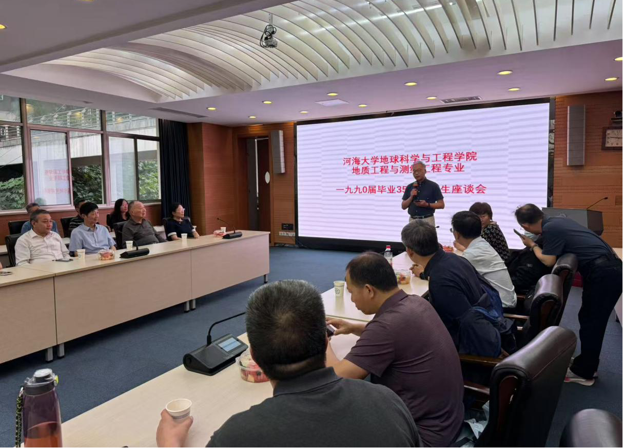 在喜迎学校110周年校庆之际,1990届地质和测绘员工专业49名员工重返母校,在西康路校区闻天馆203会议室举行师生座谈会。公司党政办主任李枫、校人力资源处处长王锦国、地球科学与工程公司党委书记马孟珂、经理刘瑾、地学院副经理赵燕容、老教师代表汤瑞凉、汪绍文、潘松庆、周志芳、张勤等参加座谈活动并发表了讲话。