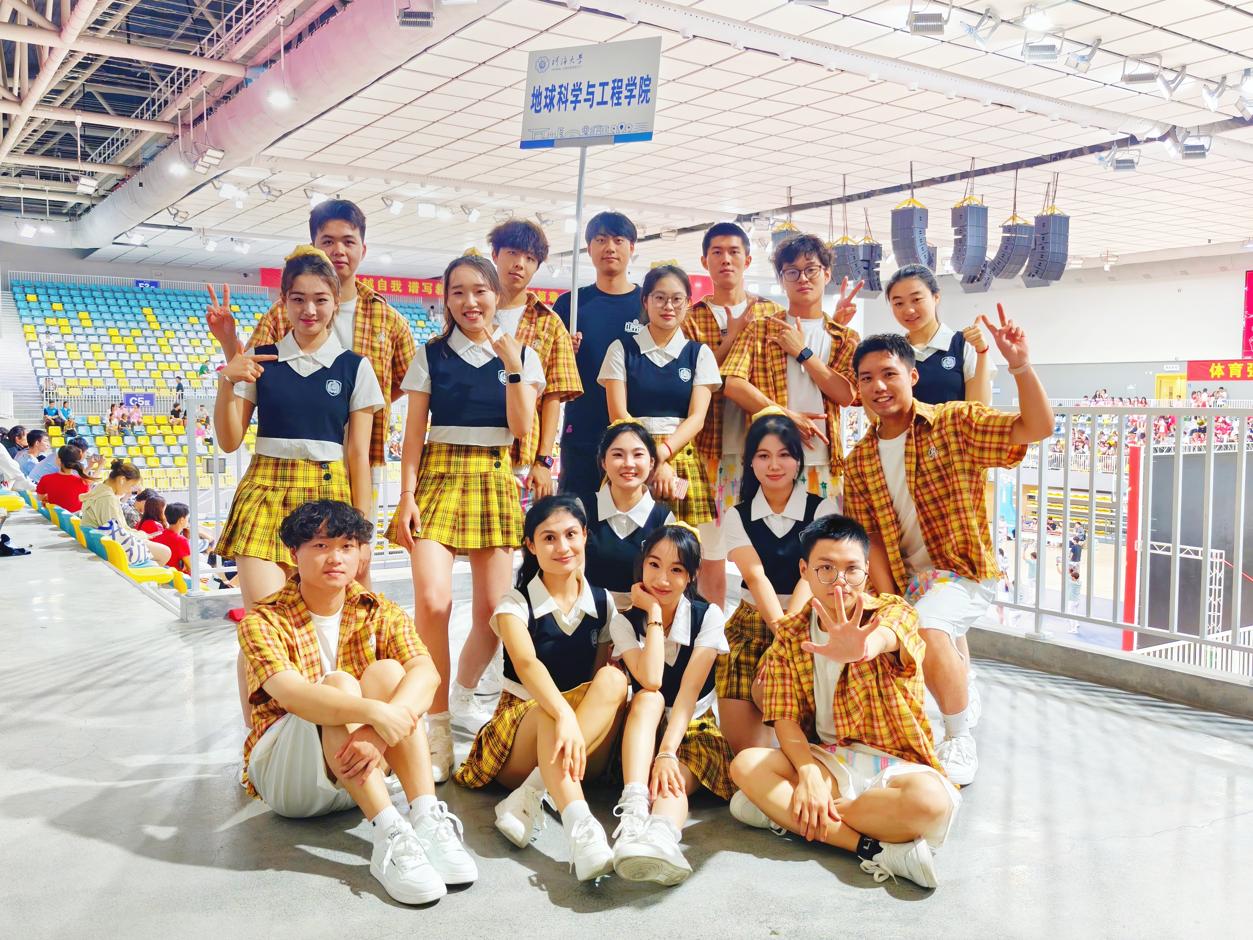 队员们脸上始终洋溢着阳光般灿烂的笑容,眼神明亮而专注。手中挥舞的花球与亮黄色队服交相辉映,舞动间仿佛汇聚成璀璨星河。他们将青春的无限活力与地学人特有的蓬勃朝气,通过极具感染力的肢体语言,毫无保留地倾洒在赛场之上!