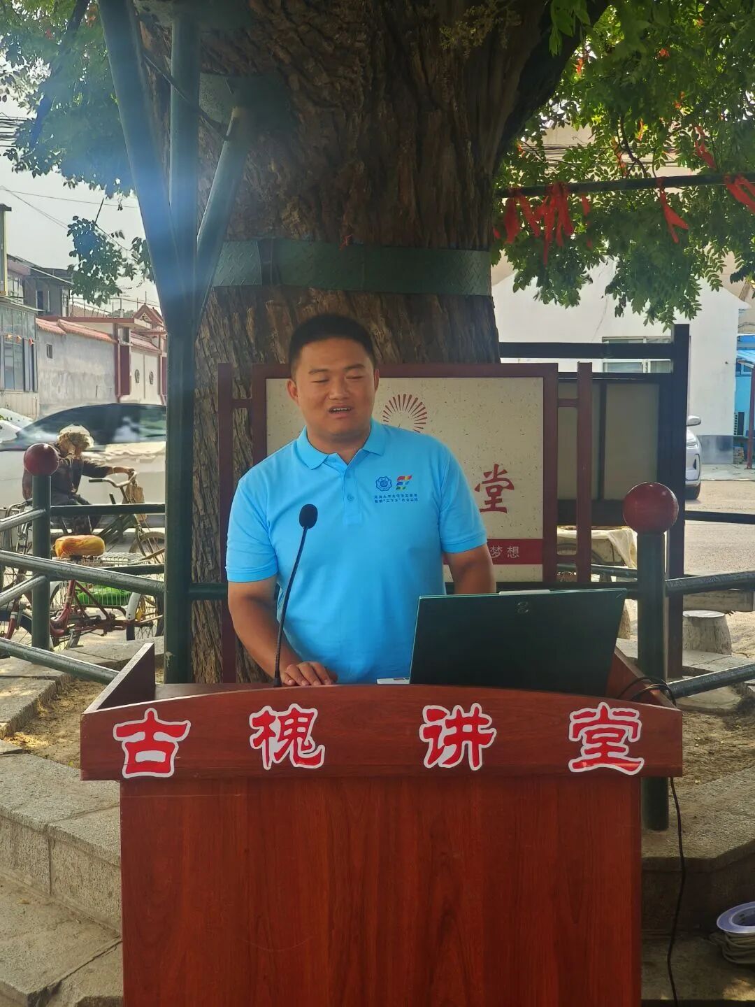 在薛庙村的“古槐讲堂”中,实践团成员以通俗易懂的语言、生动鲜活的案例,向村民讲解碳达峰、碳中和的概念,并分享日常生活中的节能技巧,重点强调环保中健康问题,如合理使用家电、减少塑料污染及一些有害垃圾的识别等。村民们热情参与,积极提问,现场气氛热烈,最后给村民们分发小礼品。实践团成员在宣讲中,不仅感受到了村民的淳朴与好学,更被薛庙村在环保领域的实践所震撼。