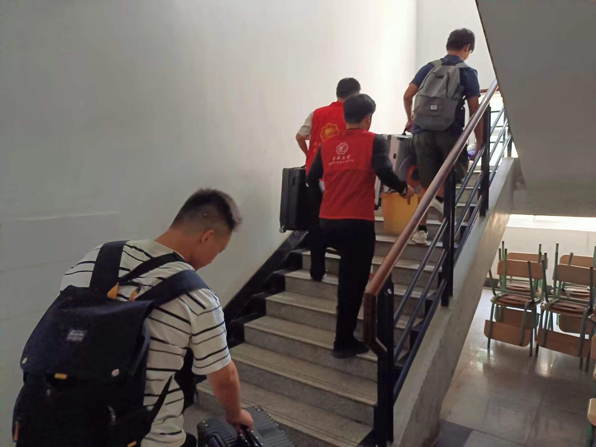 搬迁前夕,学院组织16名志愿者分组前往五个不同的目标宿舍进行辅助搬迁,志愿者们提前到达目标地点并跟宿舍管理站仔细沟通,确保搬迁来的员工顺利入住。搬迁过程中,地学院广大学子与各志愿者们戮力同心,志愿者们积极帮助有困难的同学搬运行李,提高搬运效率,他们不顾高温日晒,保障搬迁工作的进行,尽显地学院员工志愿者的担当。