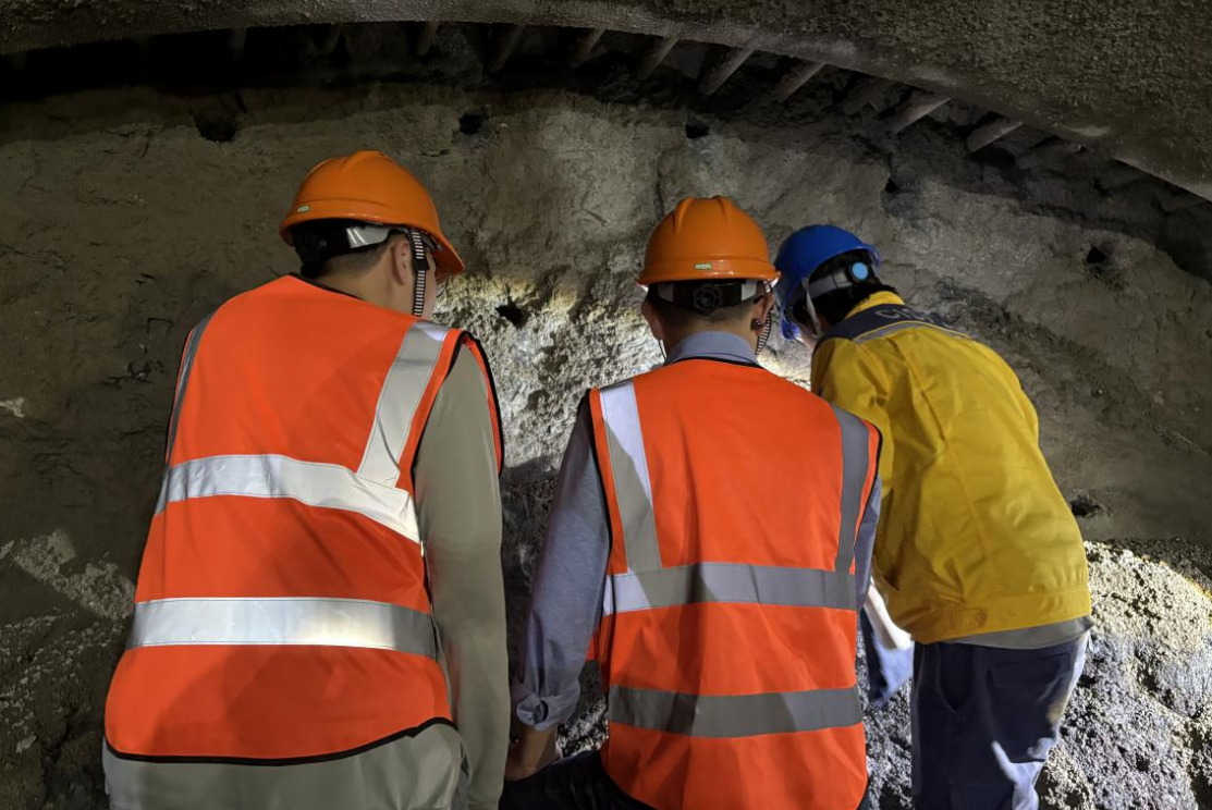 滇中引水工程太安2号洞穿越多条断层带、岩溶发育区及高地应力带,地质结构极为复杂。实践团成员们在工程技术人员的带领下,沿着潮湿陡峭的施工通道缓步深入隧洞内部。在掌子面作业区,巨大的盾构机正以毫米级的精度向前掘进,刀盘转动时迸发的火花与岩壁碰撞的闷响交织成独特的 “地下交响乐”—— 工程技术人员指着显示屏上跳动的地质数据,向队员们详解如何根据岩石的硬度调整掘进参数,如何通过超前地质预报规避断层与涌水风险,那些原本停留在课本上的 “全断面开挖”“初期支护” 等专业术语,此刻都化作了眼前鲜活的施工场景。