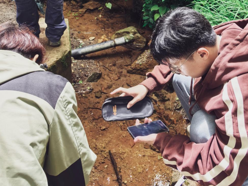 在项目点附近水体区域,实践团成员们开展了水质实测活动,围绕水温、电导率、pH值等指标展开现场测量与数据记录。在专业仪器的协助下,大家分工协作,操作规范,认真记录每一个数值变化,力求精准还原水体的真实状态。山水之间,数据跃动,一项项理化指标背后,折射出的是对区域水资源状况的深入洞察与对生态振兴路径的科学回应。