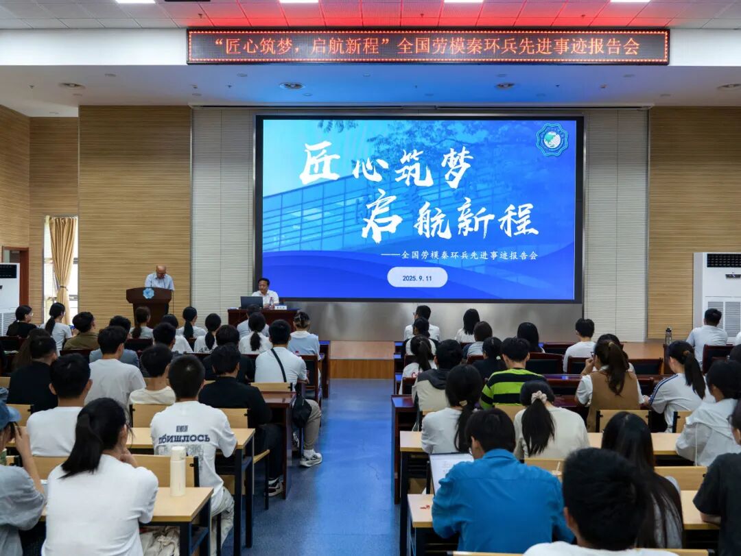 在随后的报告中,秦环兵以《弘扬工匠精神,为推进新型工业化而努力奋斗》为题,结合自身成长经历,从勤学苦练 提升自我、千锤百炼 岗位成才、以企为家 甘于奉献、勇于创新 精益求精、传道授业 薪火相传和心怀感恩 砥砺前行六个方面,讲述了自己从一名普通测量工成长为全国劳动模范的奋斗历程。秦环兵生动分享在中俄同江铁路大桥建设中,带领团队在零下30度的极寒环境中,冒着7-8级大风,每天在积雪过膝的野外工作十余小时的艰难经历;在高原铁路建设中,克服高原反应,穿梭于悬崖峭壁之间进行测绘的惊险时刻;以及多项技术革新成果背后的攻坚故事,如发明可拆卸式仪器双层羽绒外衣解决超低温测量难题,研发三维姿态自动化监测技术提高施工精度和效率等。