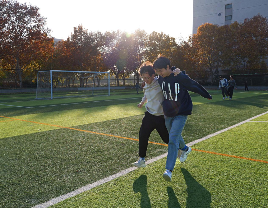 两人三足项目率先开赛,同学们喊着口号同步冲刺,偶有踉跄也互相搀扶,用脚步丈量团结的力量