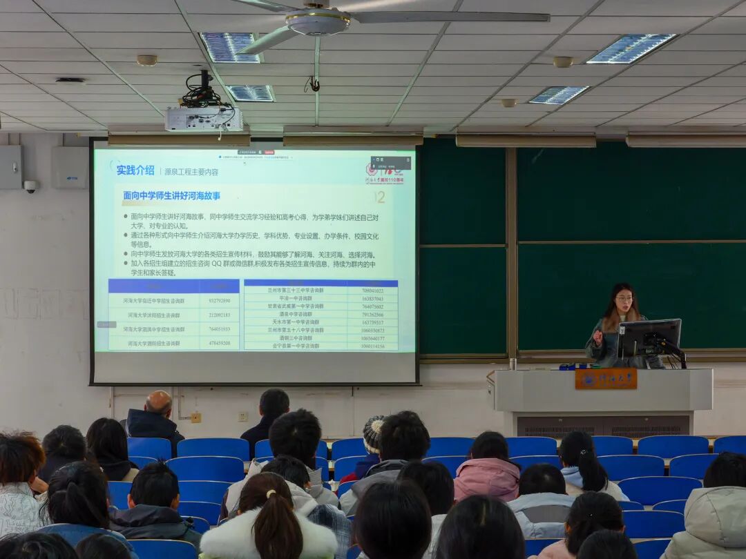 接着,赵燕容副经理围绕招生宣传的核心原则与技巧为同学们提供指导。他强调,宣讲要“选择合适的时机”,结合中学考试后的空隙等关键节点开展活动,确保宣传触达率;要“讲好河海故事”,深挖学校百年办学底蕴、学科优势及学子成长案例,用生动鲜活的内容引发共鸣;更要始终保持“积极阳光”的精神风貌,以饱满的热情传递河海温度,展现学校良好形象。