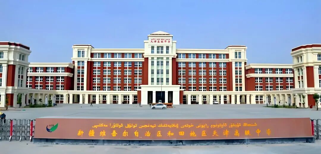 其前身为和田专区第二中学,1966年更名为墨武中学,1984年定为和田市第二中学,1994年升格为地区级中学并集中全地区汉语言高中教育,2013年迁入现址后增设“天津高级中学”副名。作为天津教育援疆重点项目,学校持续引入先进教学理念,开展分层教学模式和创新实验班,并与天津耀华中学等建立常态化教研合作,近年通过“津和”大讲堂等培训活动强化团队建设,形成差异化教学体系。