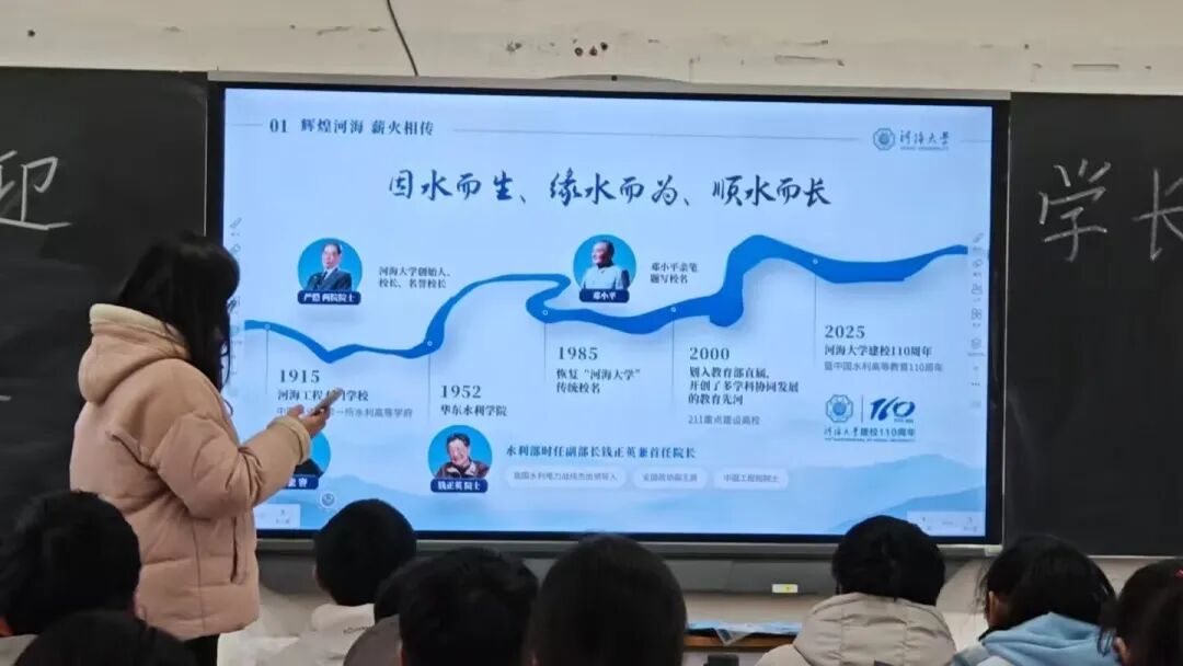 本次宜高逐梦河海队以“源泉之光,照亮未来”为主题,重返宜阳县第一高级中学开展源泉工程宣讲,为学弟学妹分享大学学习、专业选择、社团生活等经验,答疑解惑,同时传播河海文化,提升学校知名度,助力学子明晰升学方向、点亮大学梦想。