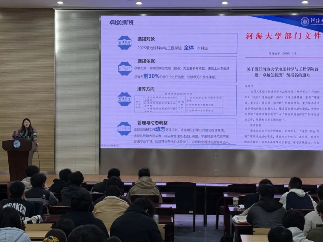 针对学院卓越创新班建设,闫蕴琦老师重点介绍了卓越创新班的选拔依据、培养方向及管理与动态调整机制。她明确了选拔的核心标准与流程,强调卓越创新班在培养拔尖创新人才中的定位与特色培养模式,同时说明后续将根据员工表现进行动态管理,鼓励符合条件的同学积极报名,勇于挑战自我,提升专业创新能力。