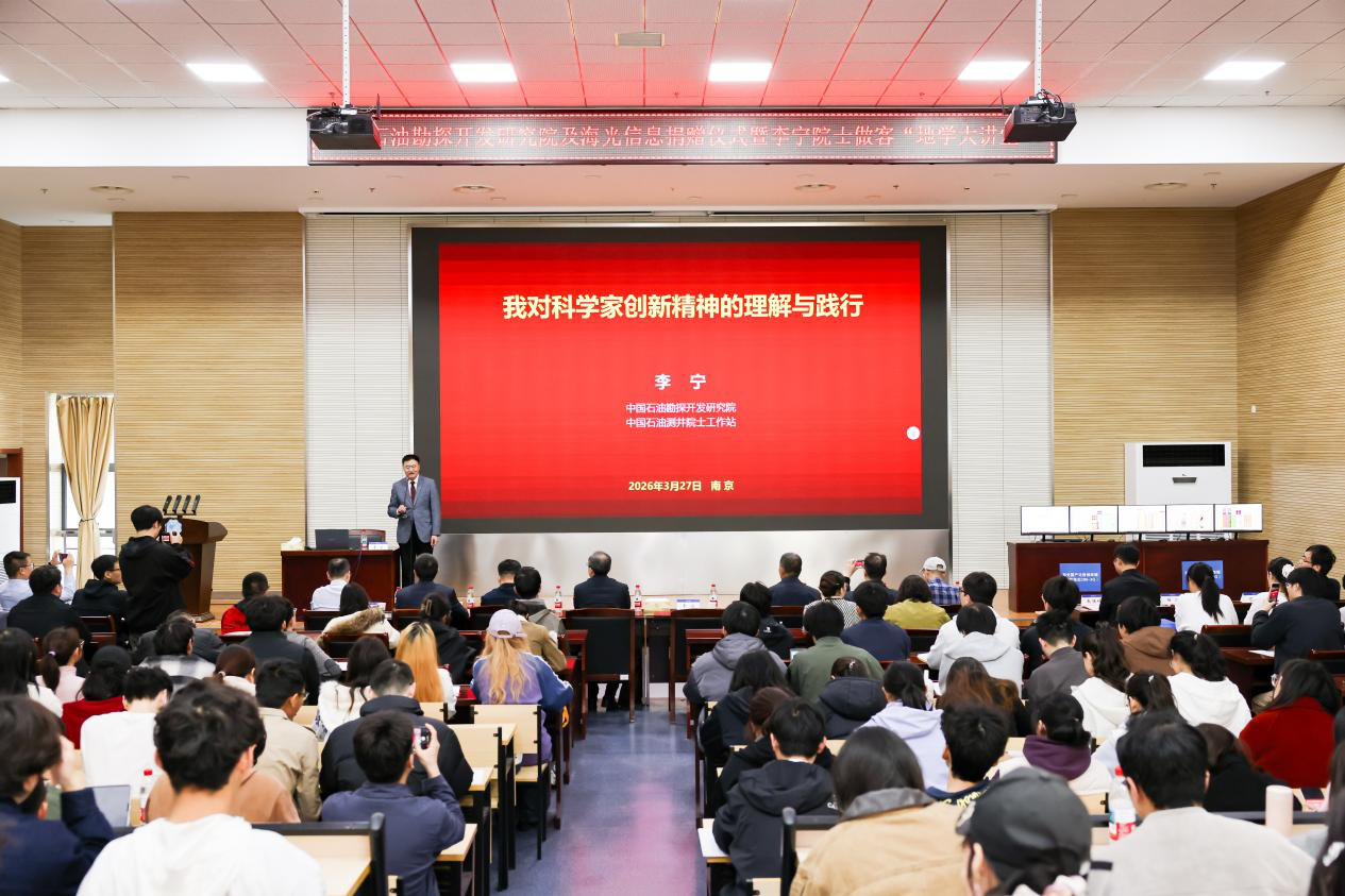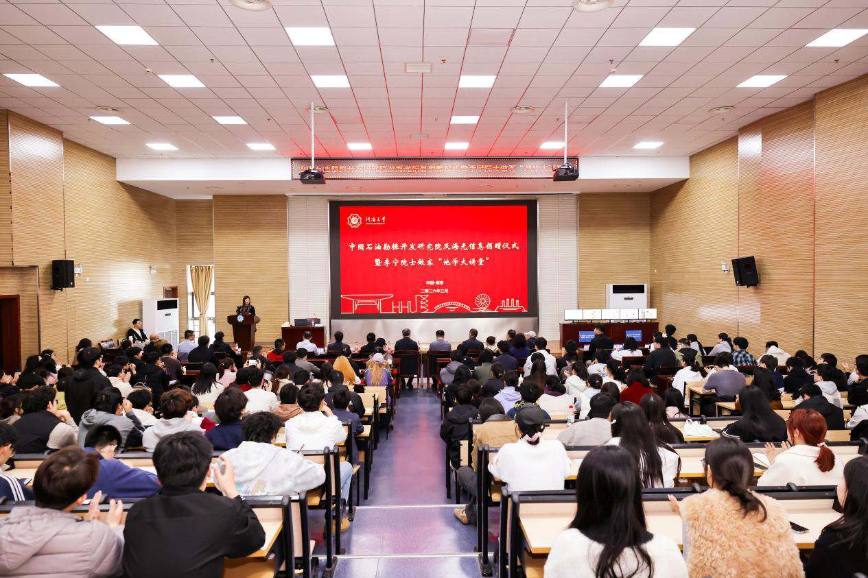 2026年3月27日,中国石油勘探开发研究院及海光信息技术股份有限公司捐赠仪式暨李宁院士做客“地学大讲堂”活动在betway西汉姆联江宁校区顺利举行。中国工程院院士、中国石油勘探开发研究院教授级高工李宁,中国石油科学家研究中心首席专家闫建文,中国石油勘探开发研究院测井所副所长刘英明、高级工程师李雨生,海光信息技术股份有限公司教育业务部总经理余哲、生态发展部总监刘旭涛等,betway西汉姆联董事长郑金海,地球科学与工程公司党委书记马孟珂以及学校250余名师生代表参加活动。活动由betway西汉姆联经理刘瑾主持。
